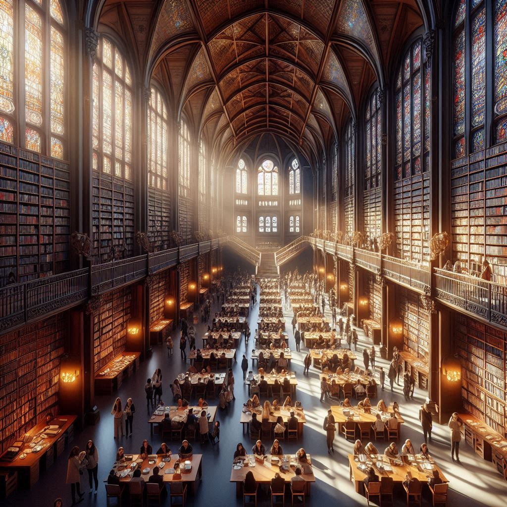 una gran biblioteca y muchas personas.png